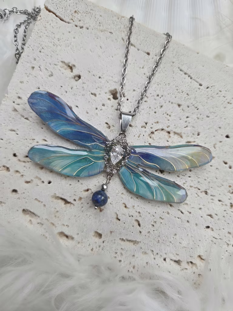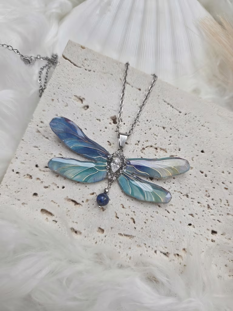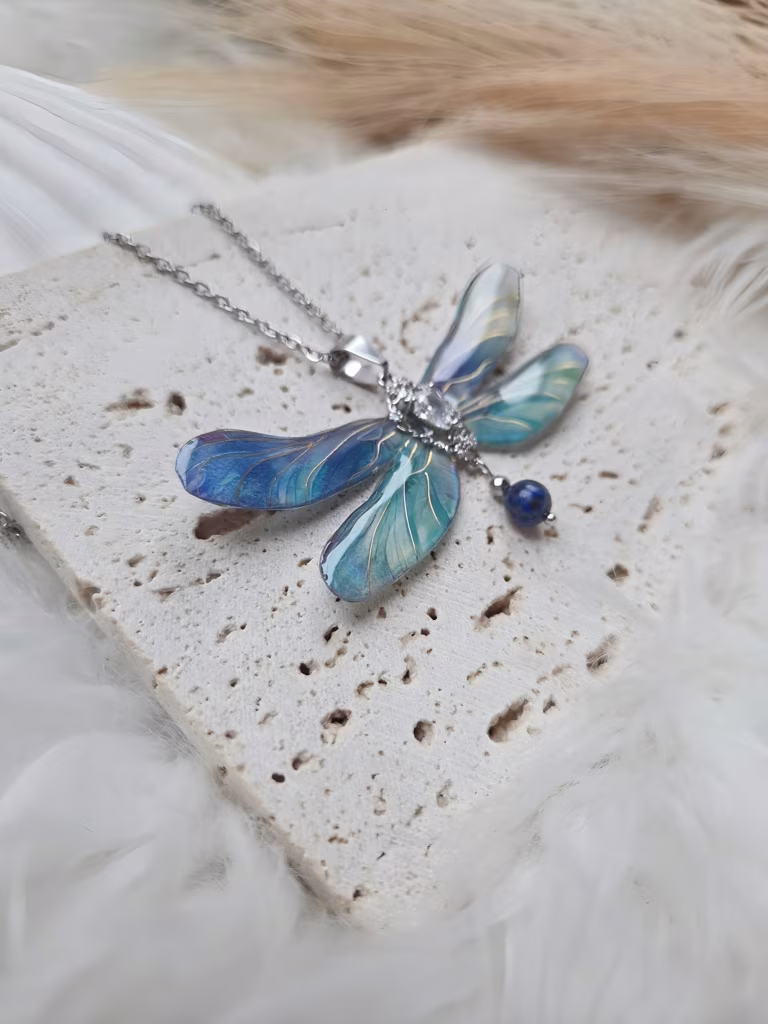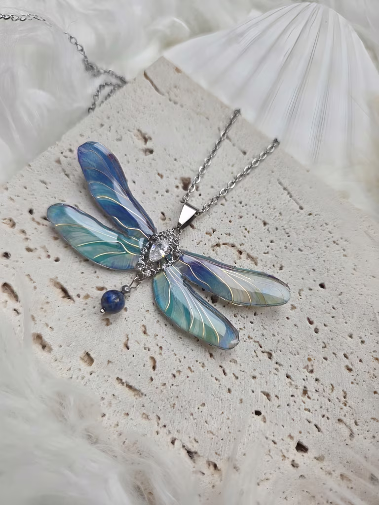 Bluemira to niezwykła ważka o skrzydłach w odcieniach głębokiego turkusu i intensywnego błękitu, delikatnie przetykanych złotymi prążkami, które błyszczą niczym refleksy słoneczne na spokojnej wodzie.