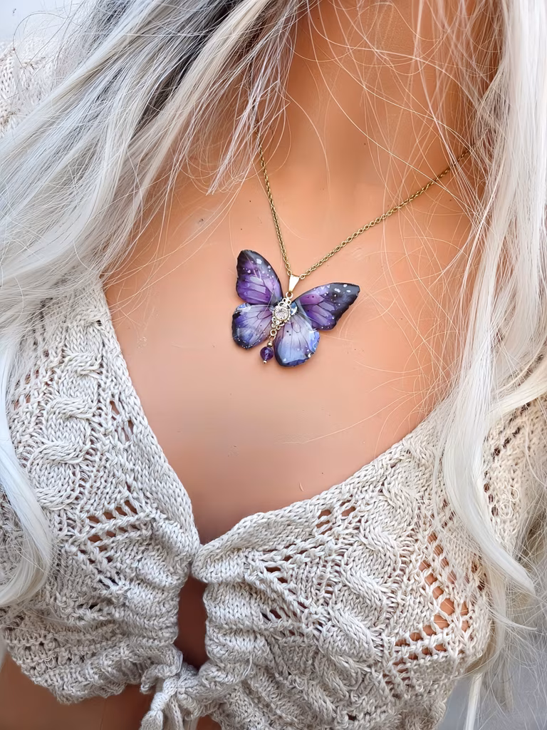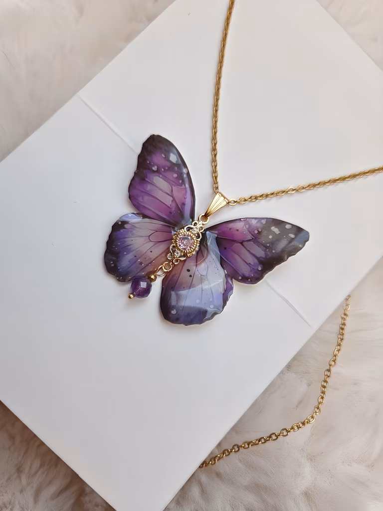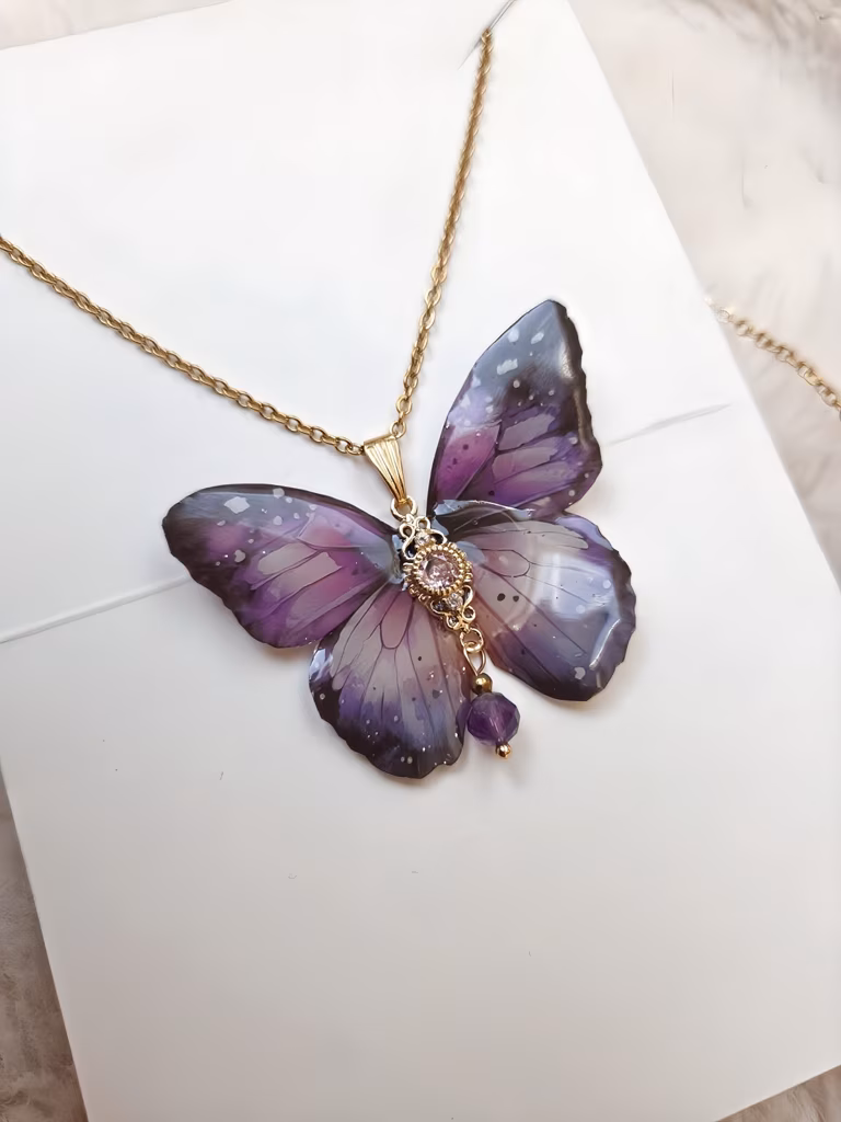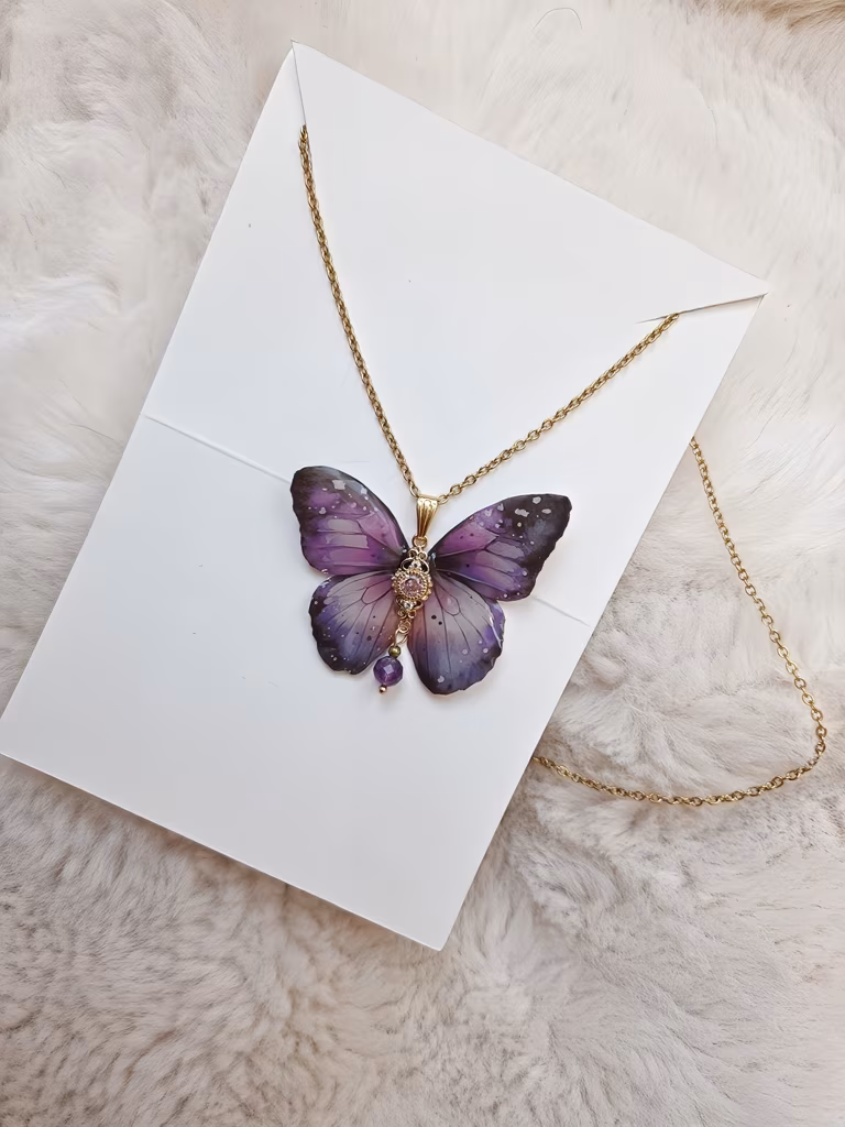 Fiołka to motylka o głębokiej duchowej wibracji – lekka i subtelna, a jednocześnie zanurzona w sferach intuicji, snów i wewnętrznego spokoju. Z kamieniem ametystu, niesie energię uzdrawiania przez ciszę, połączenia z intuicją i ochrony subtelnego serca.