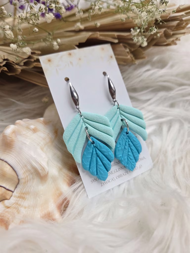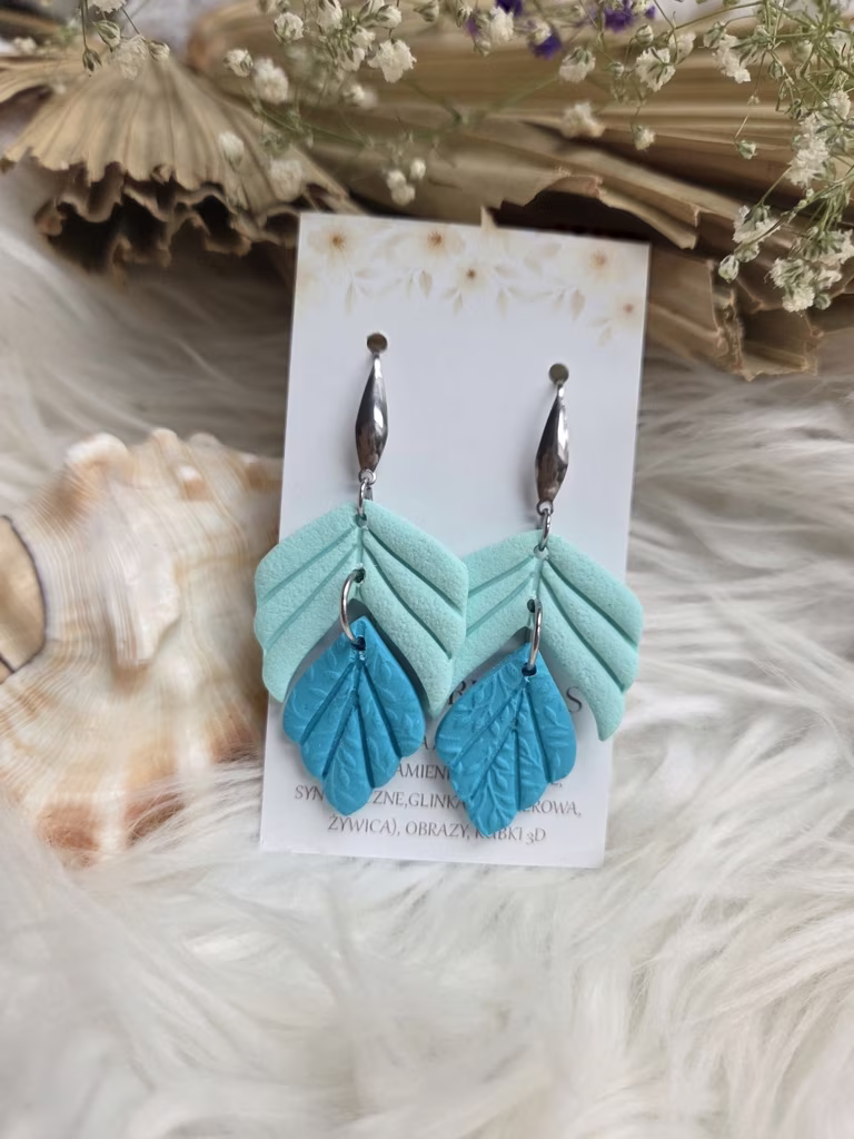 Kolczyki SERENA to harmonia odcieni aqua i głębokiego, ciemnego turkusu – inspiracja spokojem oceanu i letnim niebem tuż przed zachodem słońca. Ręcznie wykonane z glinki polimerowej, łączą lekkość formy z wyrazistą, nasyconą barwą.