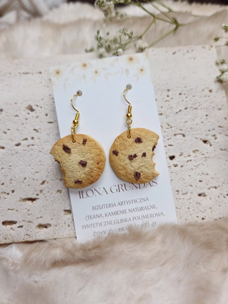 Te urocze kolczyki to małe dzieła sztuki inspirowane domowymi wypiekami 🍪 Wykonane ręcznie z wysokiej jakości glinki polimerowej, przedstawiają kruche ciasteczka z kawałkami czekolady – z charakterystycznym „nadgryzionym” fragmentem, który dodaje im wyjątkowego, zabawnego charakteru.