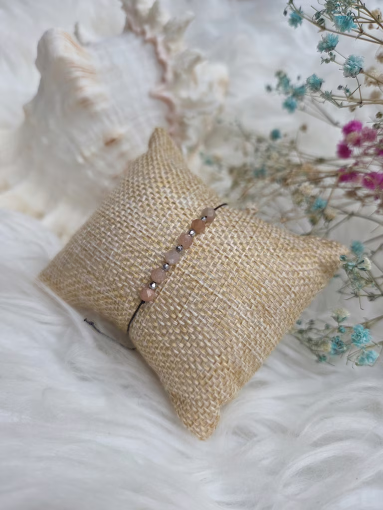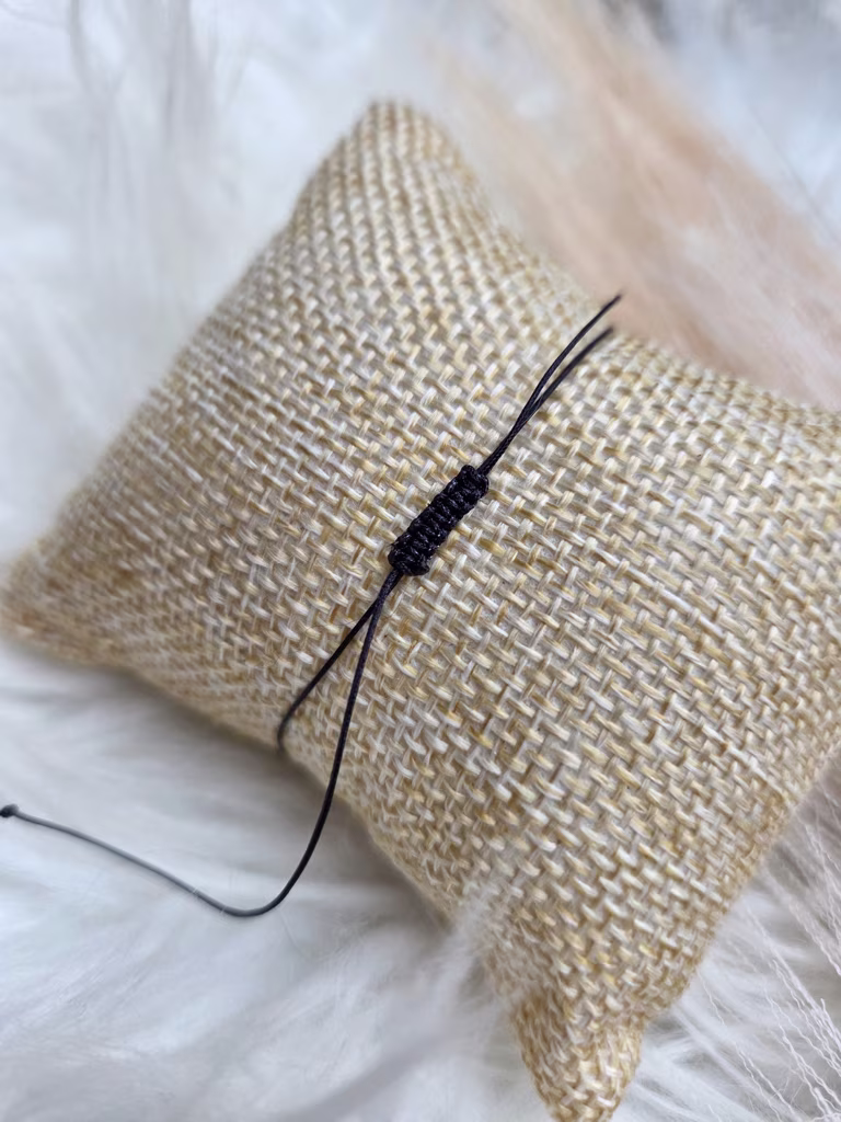 Bransoletka została wykonana na cienkim, nylonowym sznurku, dzięki czemu jest niemal niewyczuwalna na nadgarstku, a jednocześnie trwała i wygodna. Subtelna forma sprawia, że staje się osobistym talizmanem – idealnym do codziennego noszenia.