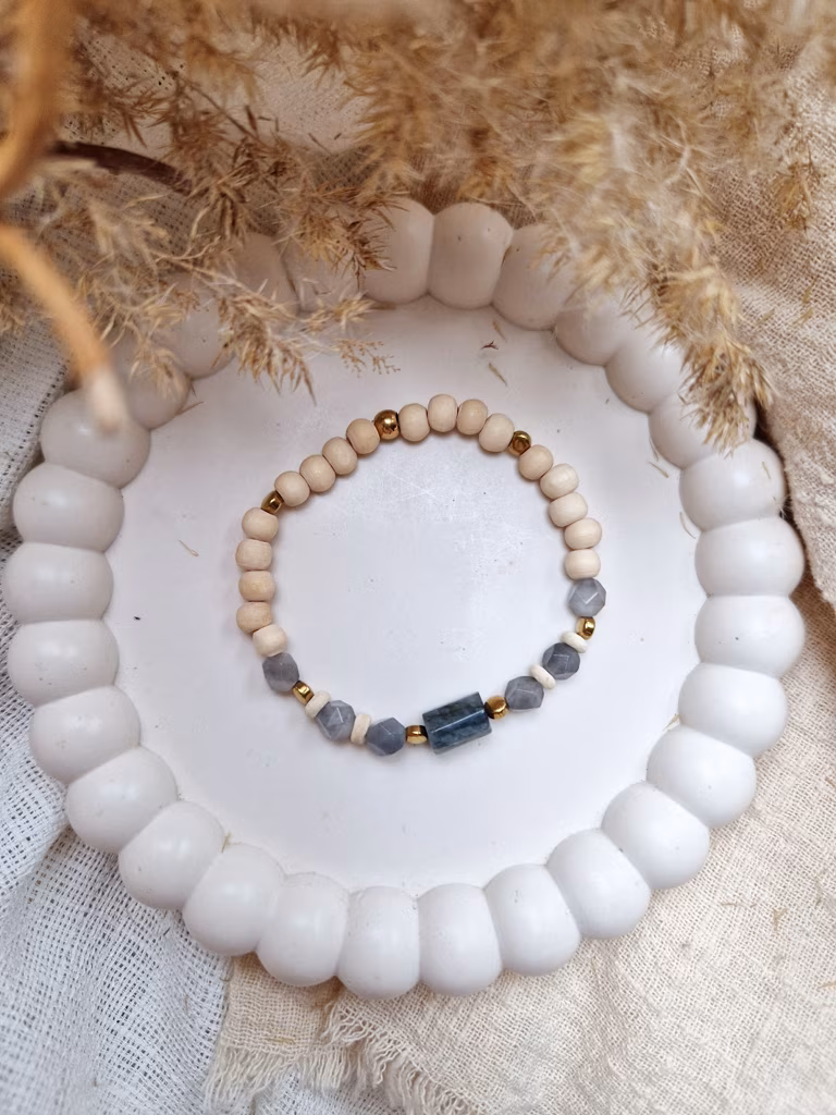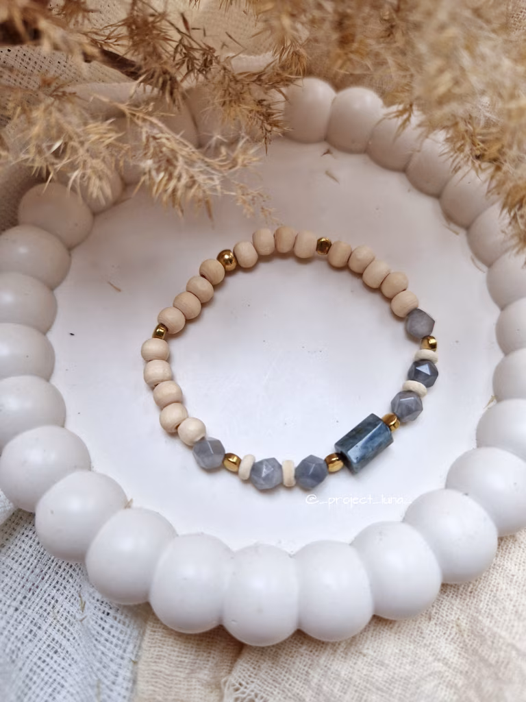 Jestem wielką fanką klimatu boho i chciałam, by moja biżuteria trafiła w podobne gusta, dlatego powstała mała kolekcja bransoletek łącząca kamienie naturalne i drewniane koraliki. Zapraszam do zapoznania się z opisem, być może ten produkt czekał właśnie na Ciebie.