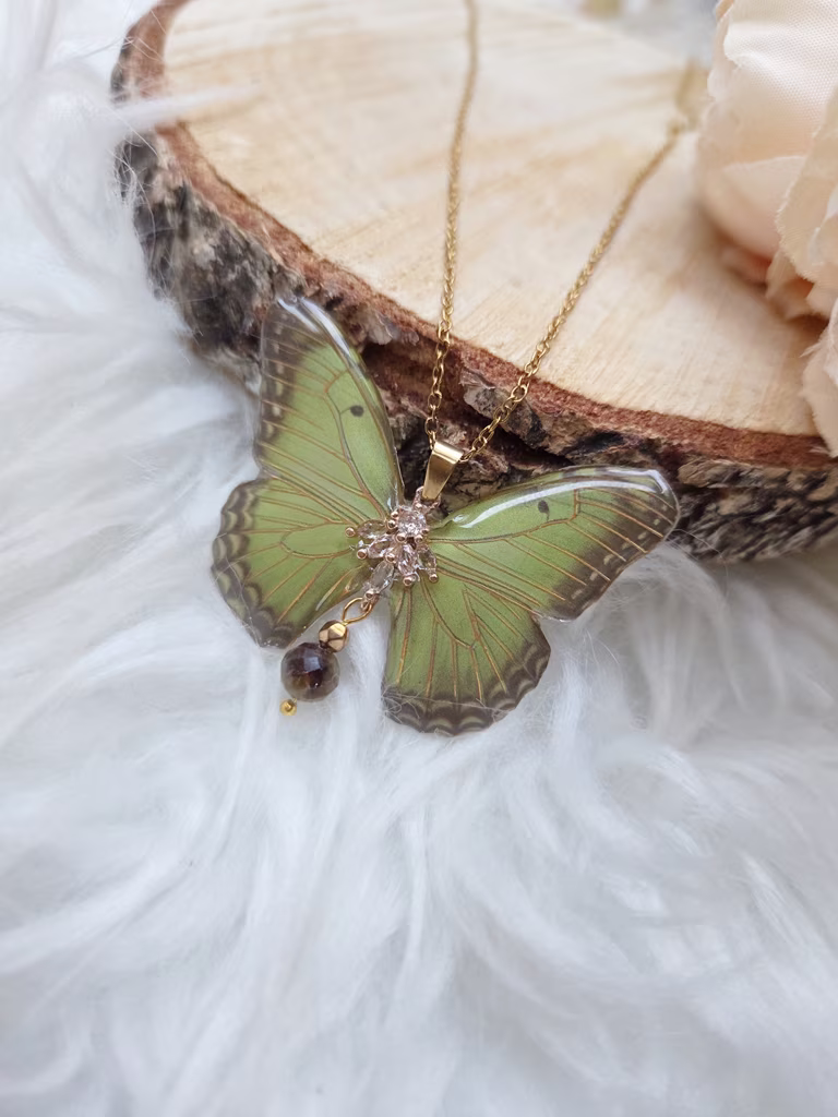 Wisiorek Wiosenne Przebudzenie jest jak pierwszy oddech ziemi po długim śnie zimy. Motyl o skrzydłach w jasnej, świeżej zieleni przypomina młode liście rozwijające się w promieniach słońca — kruche, a jednocześnie pełne życia i obietnicy. To symbol nowego początku, nadziei i cichej radości, która budzi się wraz z naturą.