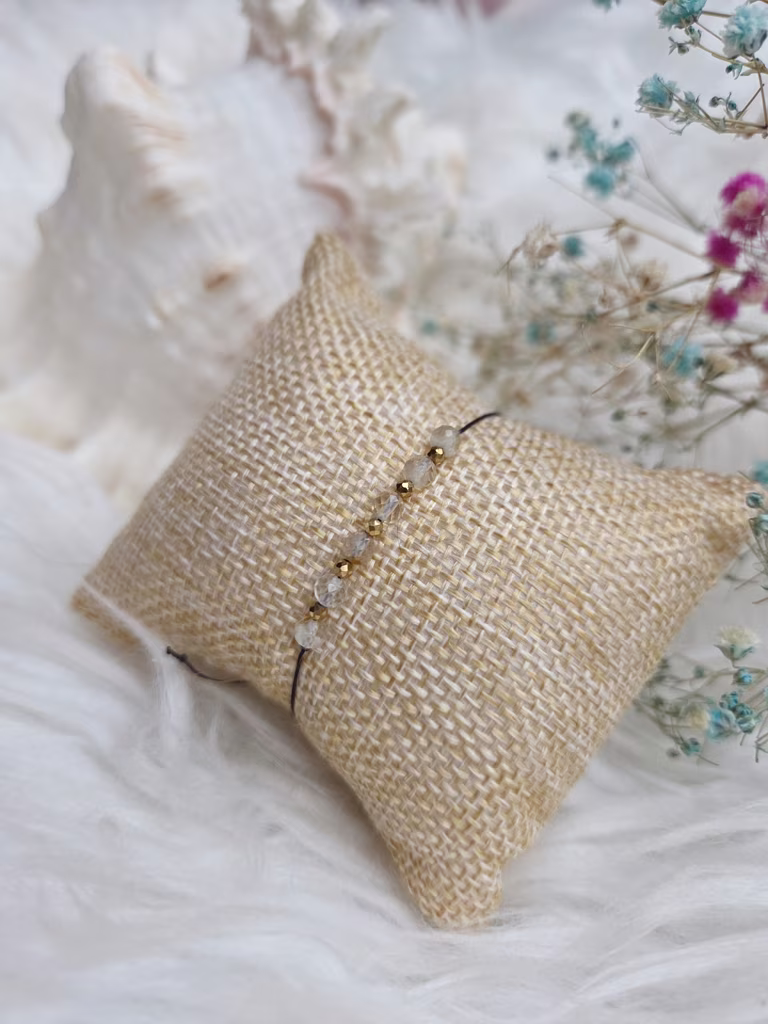 Bransoletka została wykonana na cienkim, nylonowym sznurku – lekkim, niemal niewyczuwalnym na nadgarstku, a jednocześnie trwałym. Idealna do noszenia na co dzień jako osobisty talizman, który przypomina o Twoim wewnętrznym świetle.